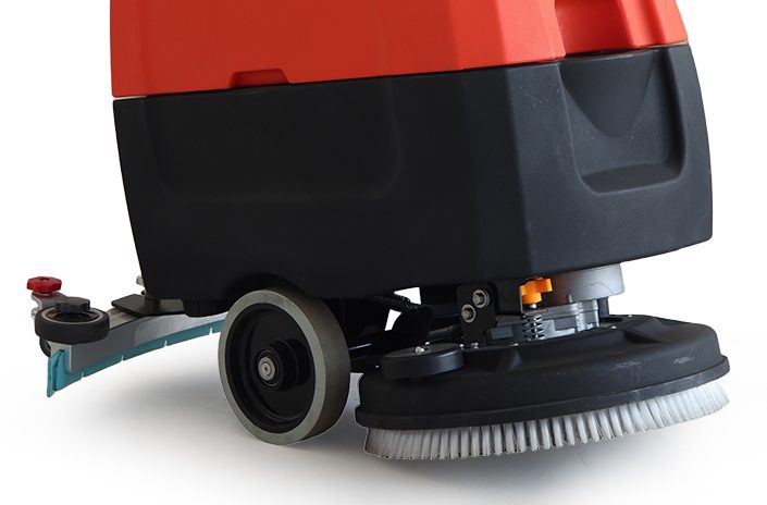Модель оснащена дисковой щеткой диаметром 460 мм и баками для чистой и грязной воды по 25 литров, что обеспечивает эффективное мытьё и одновременный сбор грязи. Благодаря компактным размерам (990×450×1050 мм) машина легко маневрирует даже в узких проходах и ограниченных пространствах.