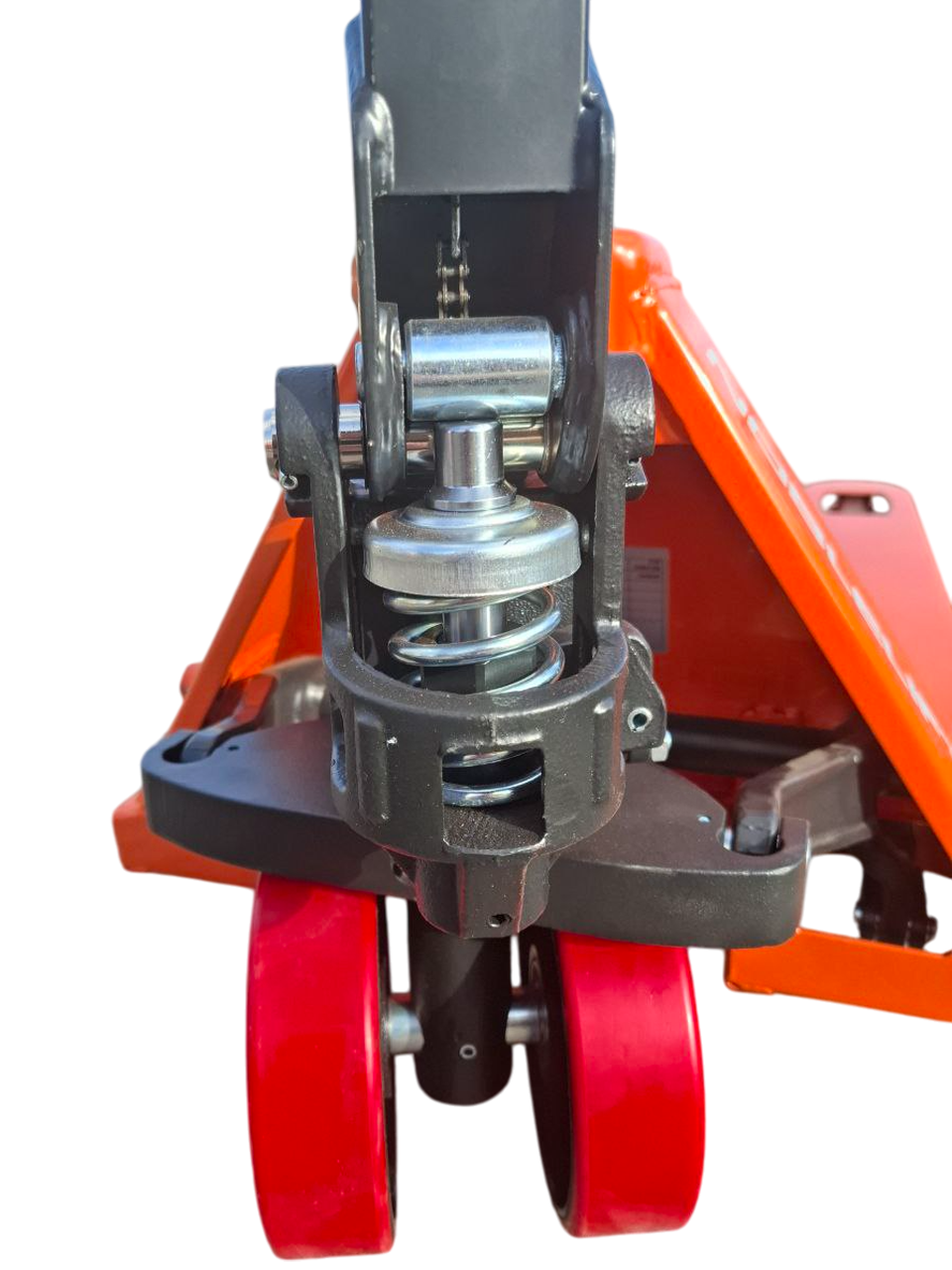 Управление гидравлической тележкой AF25 стало максимально комфортным. Эргономичная рукоятка обеспечивает удобный хват и полный контроль над движением и подъемом. Тележка легко маневрирует и управляется одним оператором, что снижает усталость и повышает эффективность работы даже в течение всего дня.