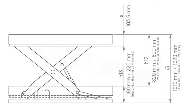 HIW-столы оснащены прочной ножничной конструкцией с усиленными направляющими, что обеспечивает безопасное и стабильное перемещение даже больших грузов. Управление осуществляется через внешний пульт с аварийным стопом и защитой от несанкционированного использования, что повышает уровень безопасности и удобства в работе