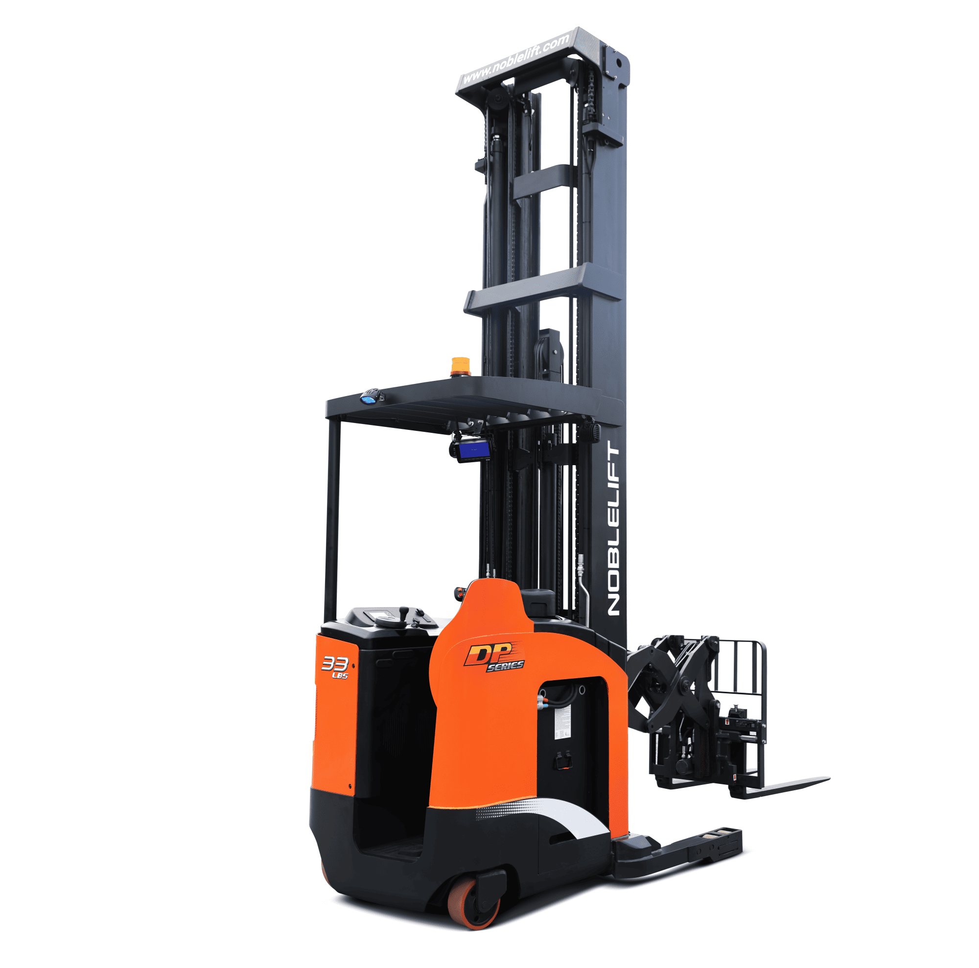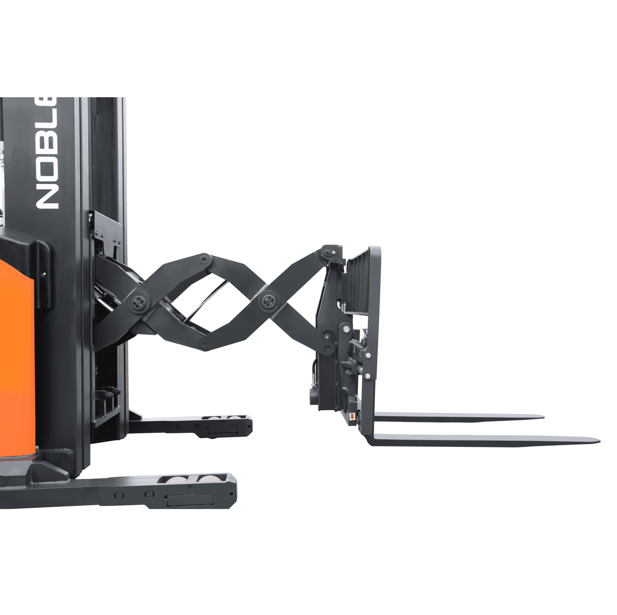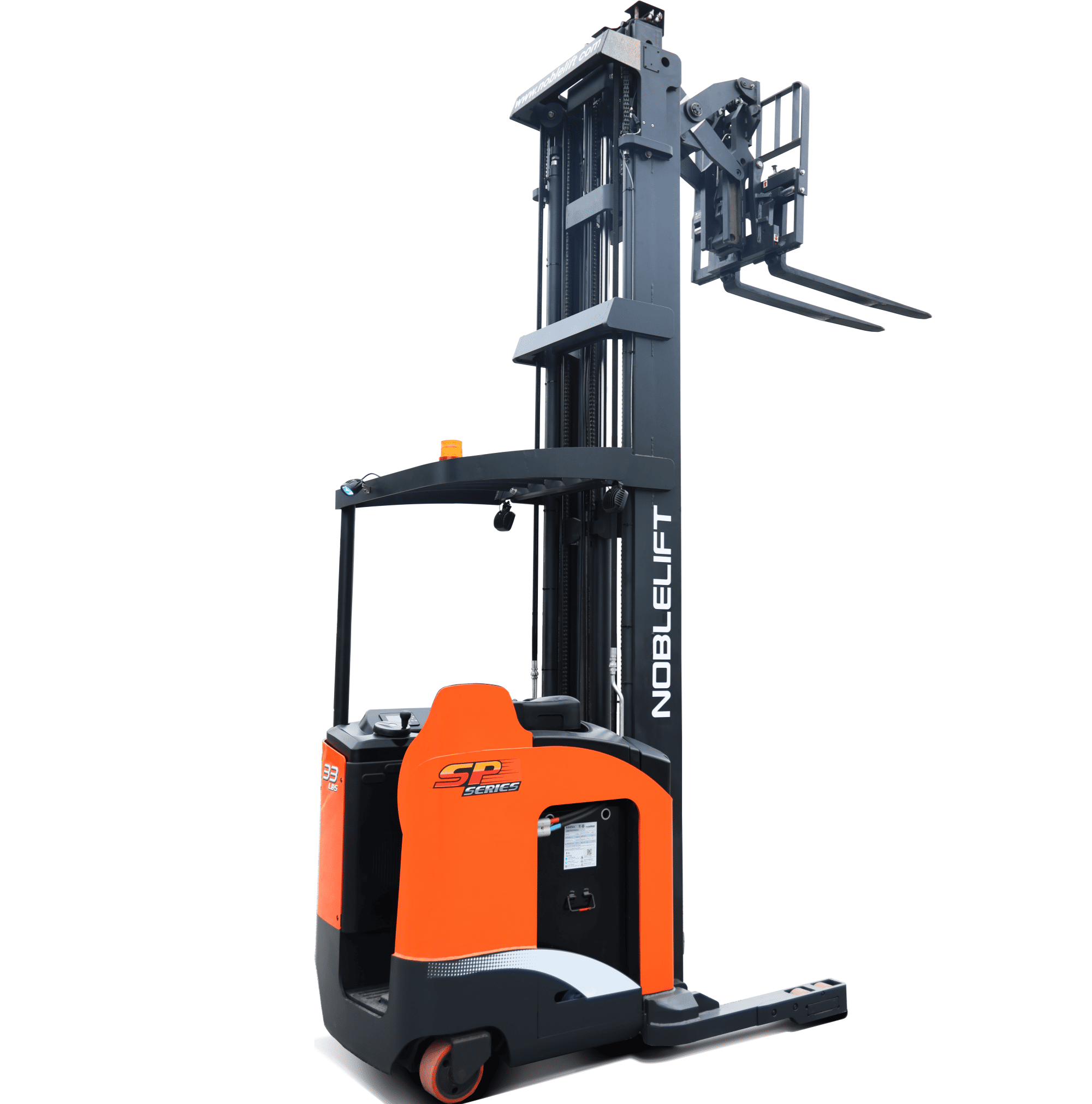 Ричтрак Noblelift RT15DP / RT15-20SP — инновационные стоячие ричтраки с ножничным механизмом для работы на высоте до 10.5 метров. Грузоподъемность 1.5-2 тонны, компактная ширина 1080 мм и радиус поворота от 1825 мм позволяют работать в проходах от 2945 мм (паллета 1000×1200). Немецкие компоненты (гидравлика Shimadzu), регенеративное торможение и система автовыравнивания вил обеспечивают точность и безопасность. Идеально для высокостеллажных складов фармацевтики, логистики и e-commerce.