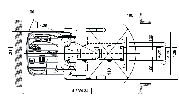 | 4.33 | Ширина прохода с паллетой 1000×1200 | Ast (мм) | См. доп. табл. 1* | См. доп. табл. 1* | См. доп. табл. 1* | |