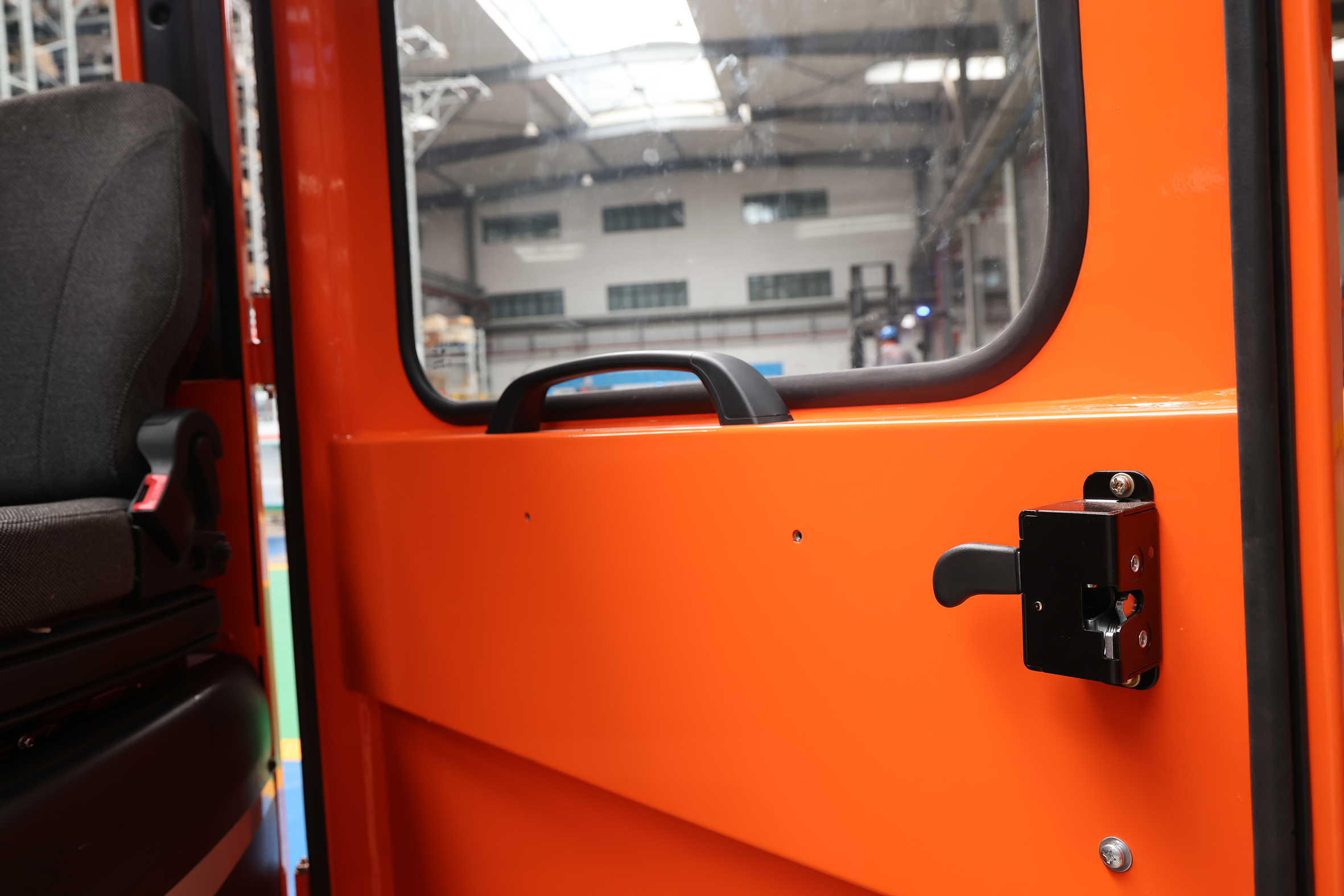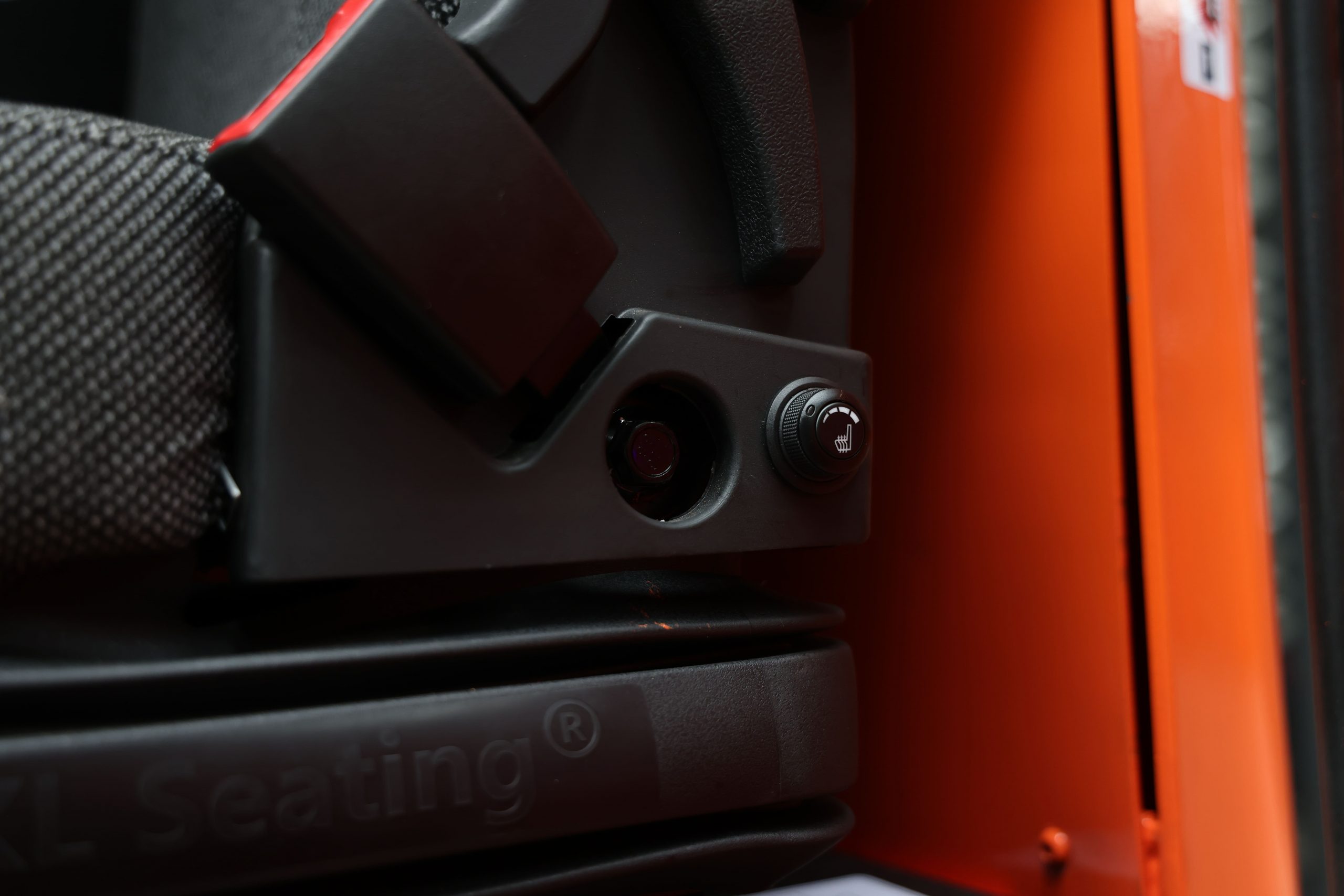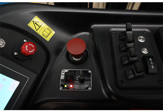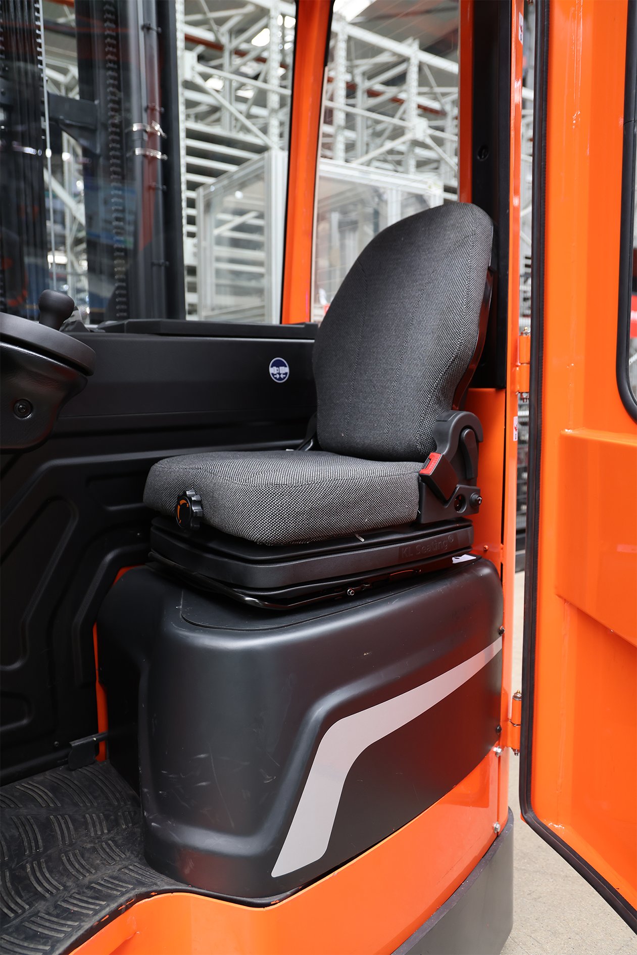 Амортизирующее сиденье с ремнём безопасности, регулируемое рулевое управление и эргономичный пульт. Электронное рулевое управление EPS с режимами 180°/360° для точного маневрирования. Многофункциональный дисплей с индикацией состояния батареи, ошибок и параметров работы.