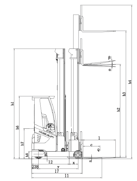 | Размеры | 4.1 | Наклон мачты/каретки вил вперед/назад | α/β (º) | 4/-2 |