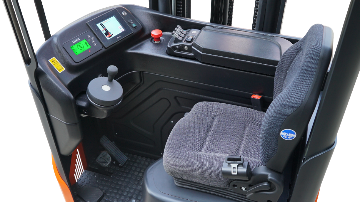 Рабочее место оснащено регулируемым сиденьем с амортизацией, что снижает нагрузку на спину при длительной работе. Оптимальная обзорность и продуманное расположение органов управления делают работу интуитивно понятной и менее утомительной. Многофункциональный дисплей с информативной индикацией позволяет контролировать состояние техники, уровень заряда и другие важные параметры в реальном времени.