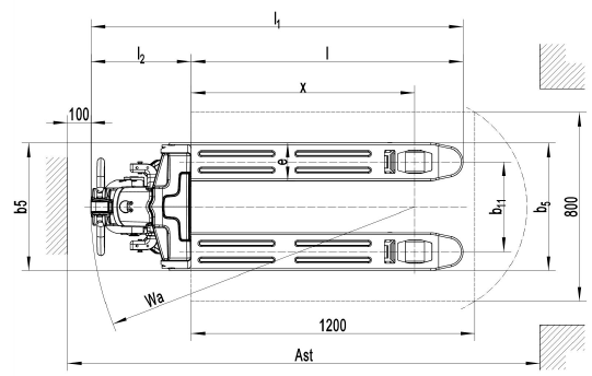4.34  Ширина прохода с паллетой 800×1200  Ast (мм)  2005  2005  2005