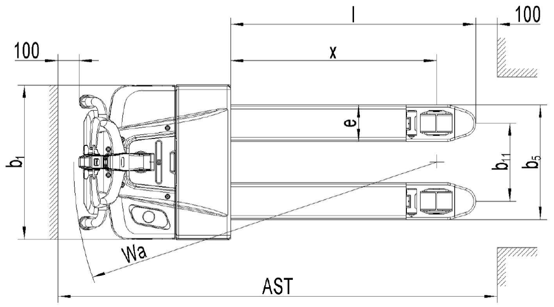 4.34  Ширина прохода с паллетой 800×1200  Ast (мм)  2250