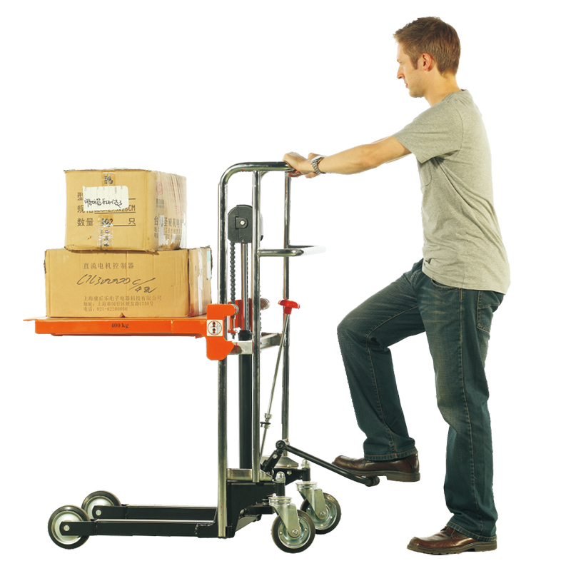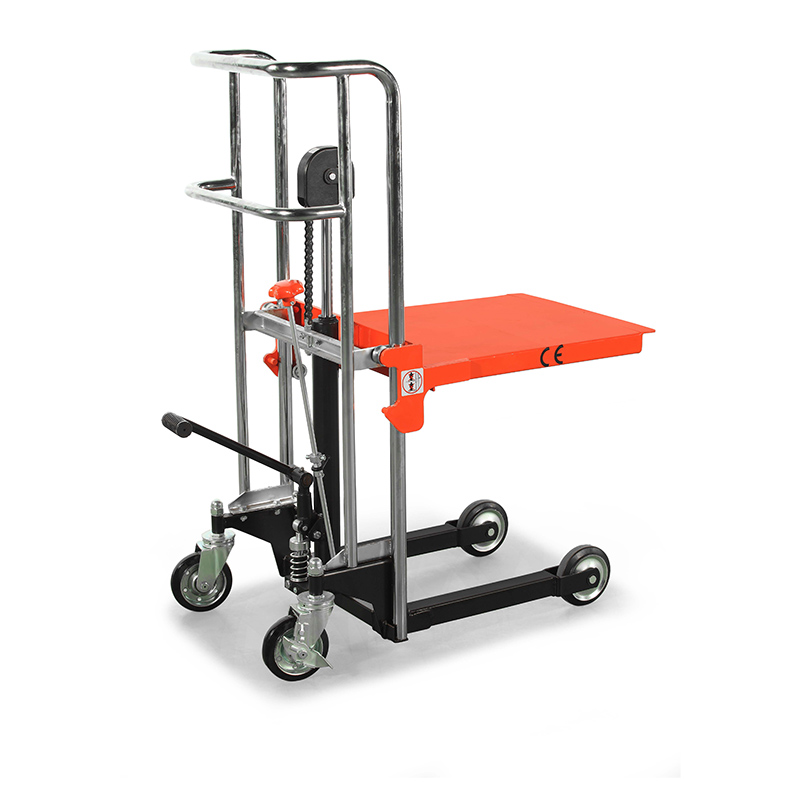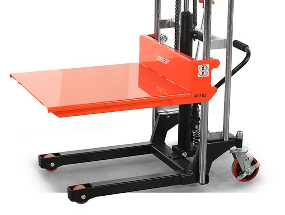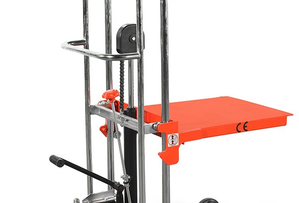 Штабелеры PS оборудованы прочной стальной платформой размером 650 × 576 мм, обеспечивающей устойчивое размещение грузов. Конструкция проста в эксплуатации: подъем осуществляется с помощью ножной педали, а опускание — поворотом рукоятки. Наличие надежного тормозного механизма гарантирует безопасную фиксацию штабелера во время работы.