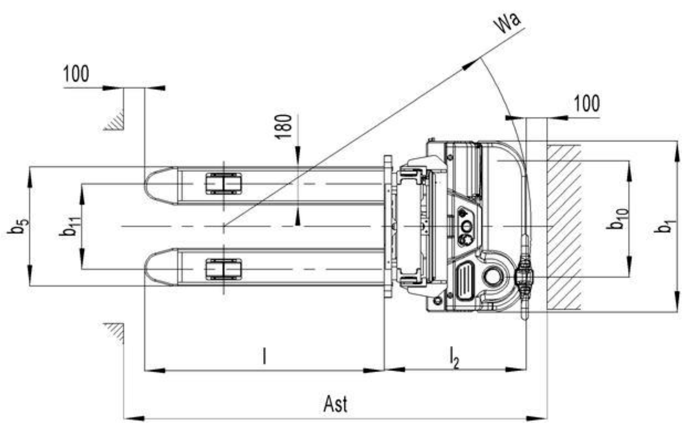 | 4.33 | Ширина прохода с паллетой 1000×1200 | Ast (мм) | 2293 | 2317 | |