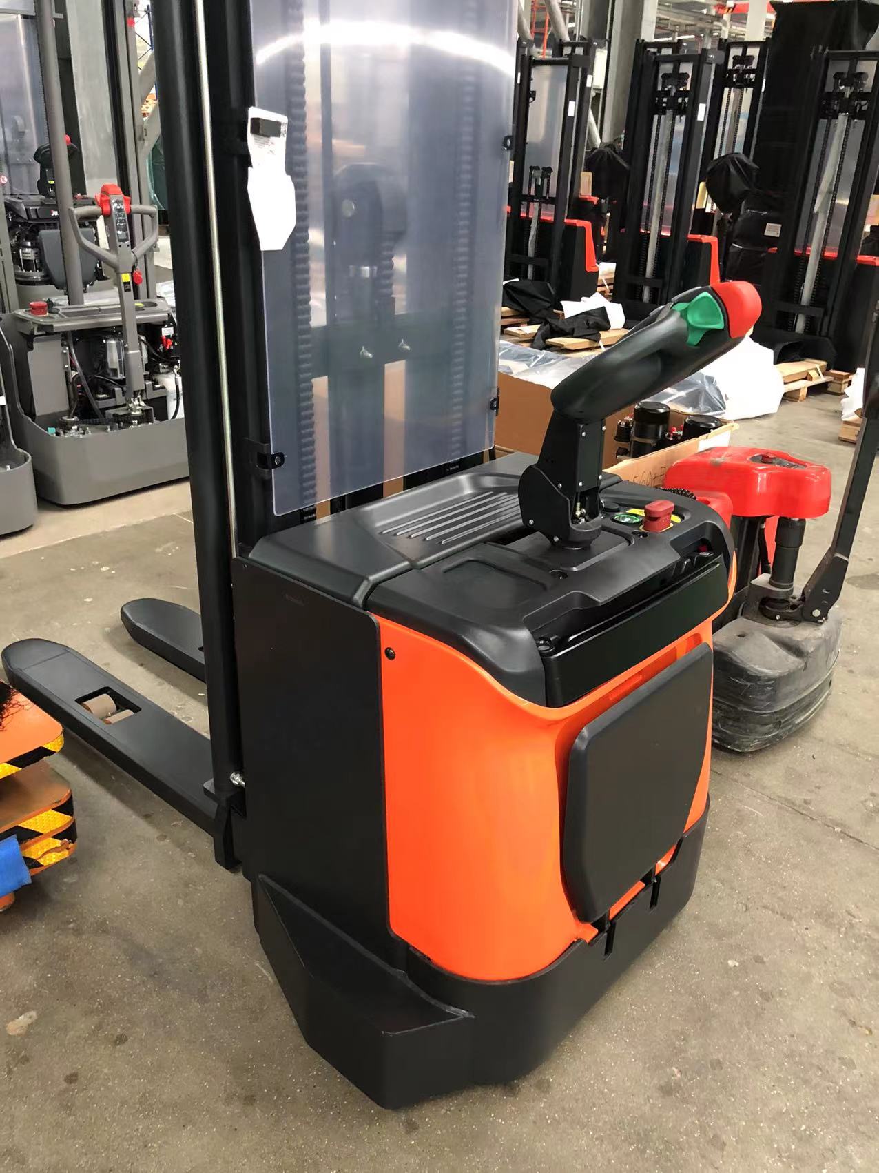 Компактные размеры и малый радиус разворота позволяют использовать штабелер даже в узких складских проходах, сохраняя при этом отличную маневренность. Оснащение электромагнитным тормозом, системой защиты оператора и удобным управлением гарантирует безопасную и продуктивную работу.