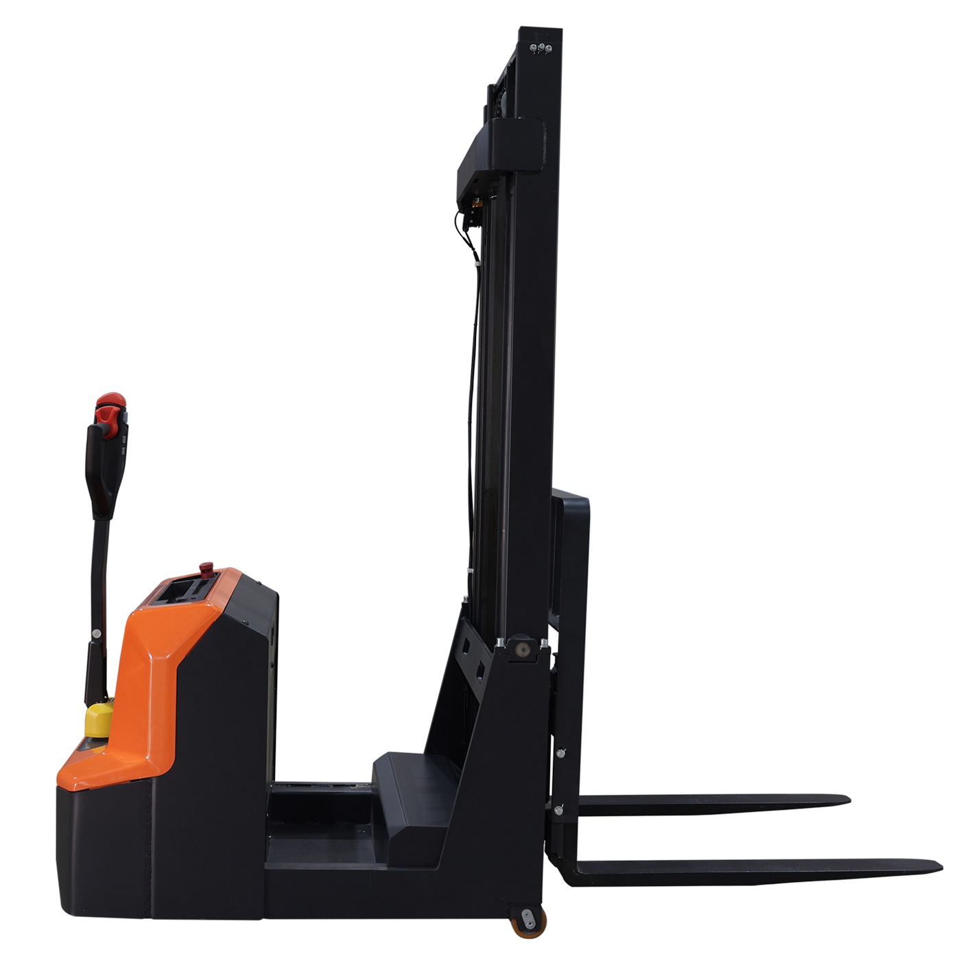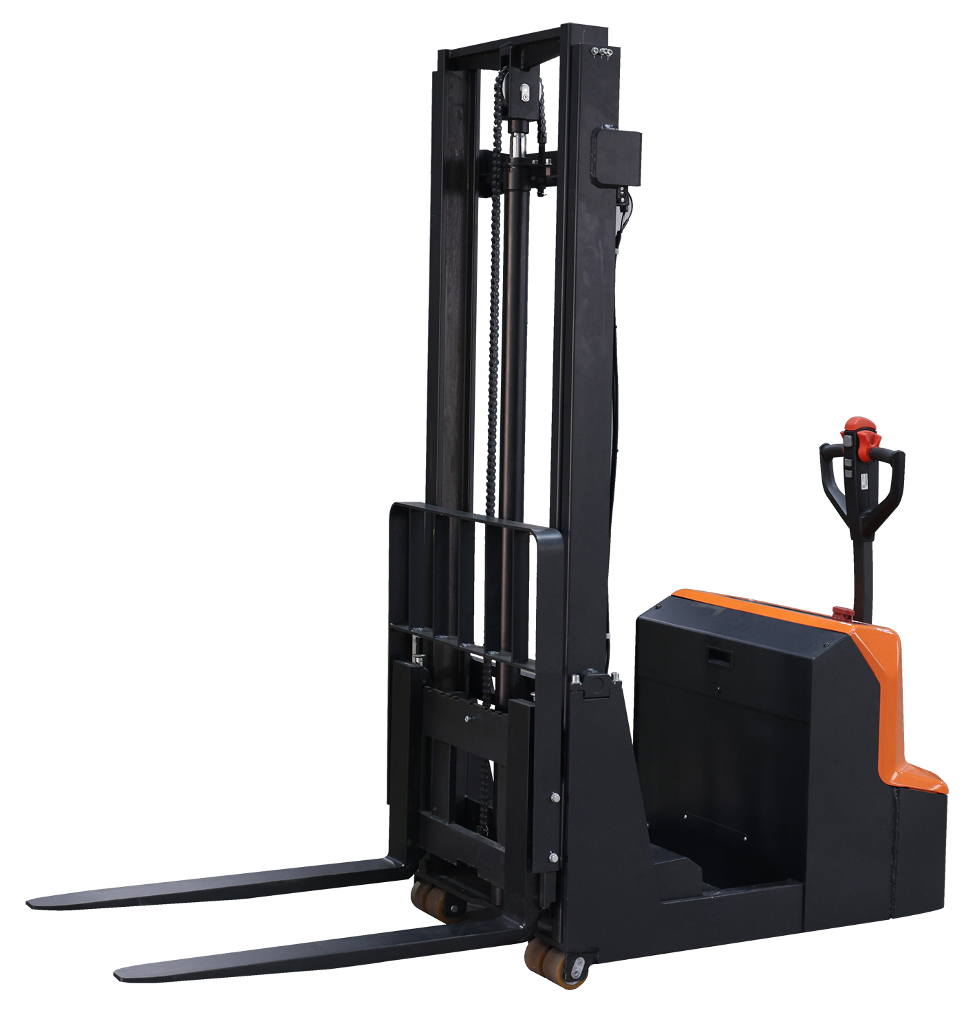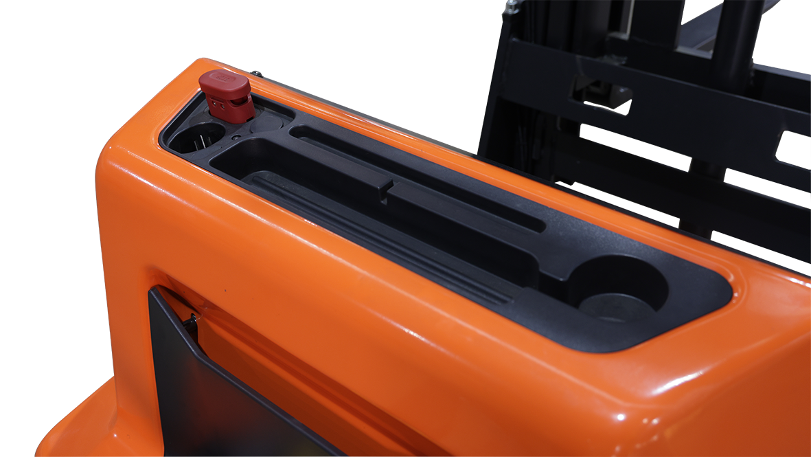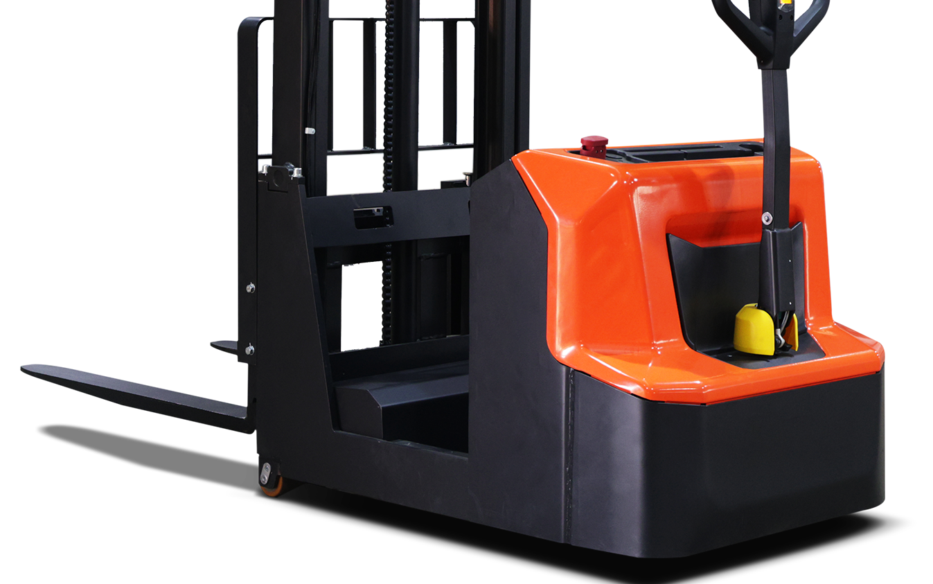 Оборудование работает от аккумуляторной батареи и оснащено современным электрическим приводом, что обеспечивает тихую, экологичную и эффективную эксплуатацию. Маневренность, компактные размеры и удобное управление делают штабелер удобным инструментом для работы в узких коридорах и на площадках с ограниченной площадью.