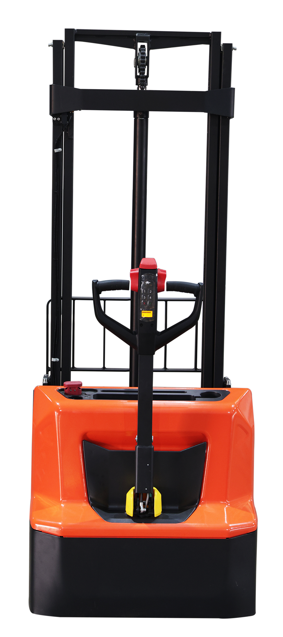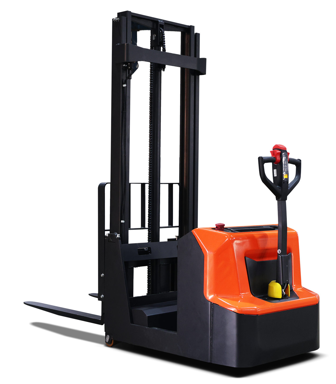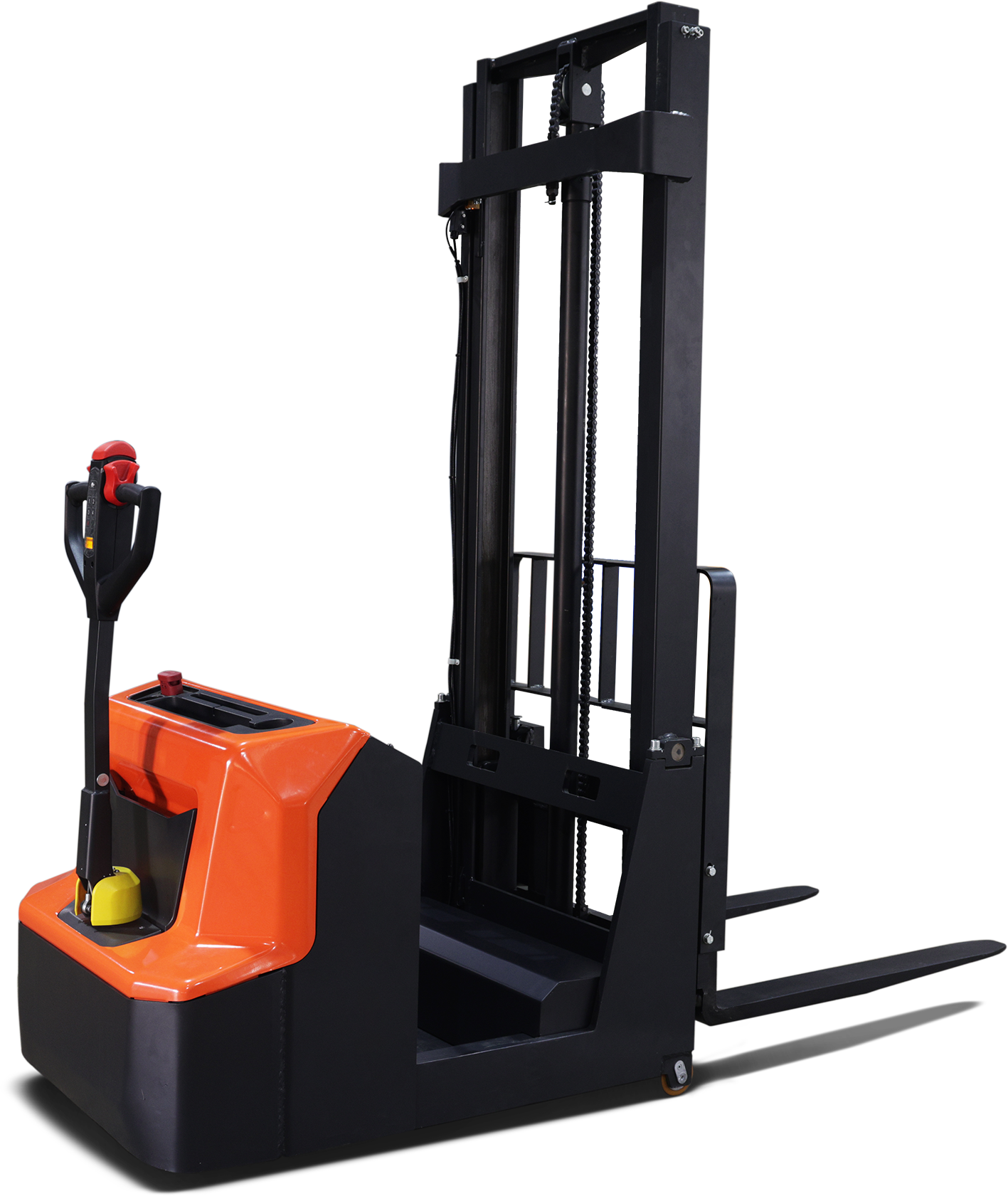 Оборудование работает от аккумуляторной батареи и оснащено современным электрическим приводом, что обеспечивает тихую, экологичную и эффективную эксплуатацию. Маневренность, компактные размеры и удобное управление делают штабелер удобным инструментом для работы в узких коридорах и на площадках с ограниченной площадью.