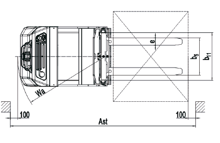 | 4.33 | Ширина прохода с паллетой 1000×1200 | Ast (мм) | 2630 | 2630 | |