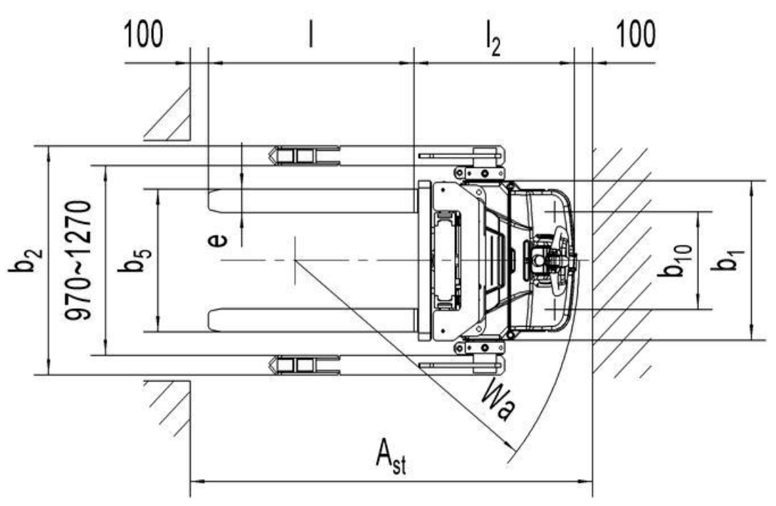 | 4.33 | Ширина прохода с паллетой 1000×1200 | Ast (мм) | 2396 | 2437 | 2446 | |