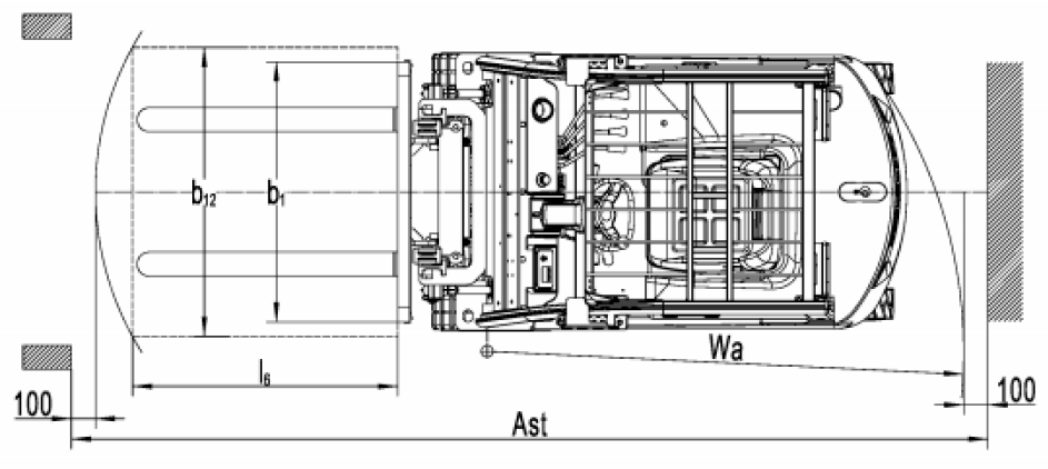 | 4.34 | Ширина прохода с паллетой 800×1200 | Ast (мм) | 3771 | 3771 | 3776 | |
