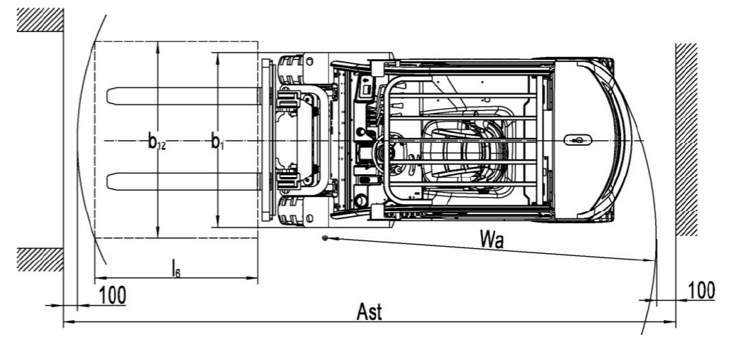 | 4.34 | Ширина прохода с паллетой 800×1200 | Ast (мм) | 3997 | 4097 | 4278 | 4323 | |