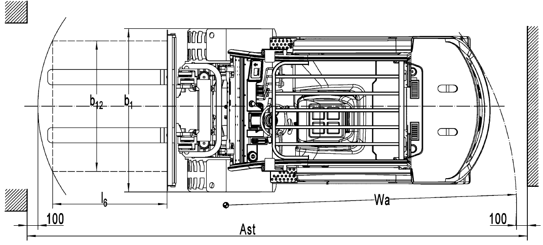| 4.34 | Ширина прохода с паллетой 800×1200 | Ast (мм) | 4453 | 4453 | 4453 | 4458 | |