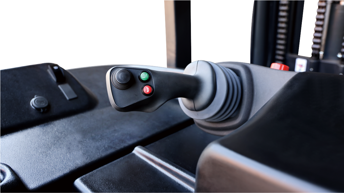 Удобный джойстик совмещает функции подъема, наклона, бокового сдвига и движения вперед/назад, ускоряя выполнение погрузочно-разгрузочных операций.