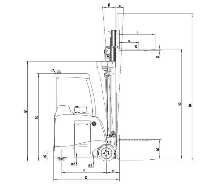 Открытая мачта уменьшает «слепые зоны», а боковой вход и просторная кабина облегчают посадку и сход оператора.