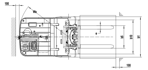Трехопорная конструкция и малый радиус поворота позволяют работать в узких проходах и маневрировать в ограниченном пространстве склада.