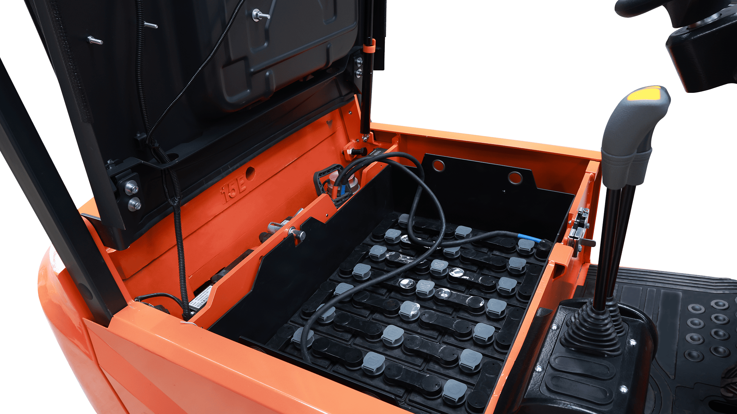 Грузоподъёмность до 1500 кг при компактных размерах, работа в узких проходах, высокая скорость перемещения и подъёма. Мощная аккумуляторная батарея 48 В с длительным временем работы и функцией рекуперативного торможения.