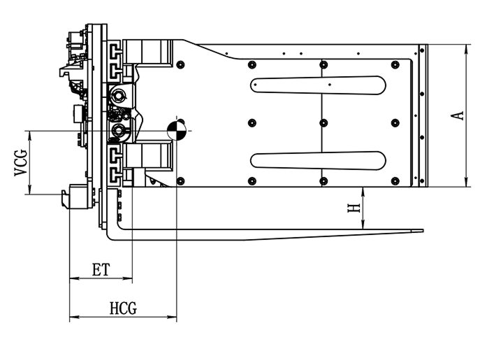 | Артикул | Г/п, кг | Центр тяж., мм | Класс каретки | Диап. раскр. O, мм | Удал. вил F, мм | Выс. лап A, мм | Длина лап B, мм | Шир. рамы C, мм | Межкрюк. расст. D, мм | Размеры вил, мм | Толщ. лап E, мм | Вес, кг | Толщ. ET, мм | Верт. центр тяж. VCG, мм | Гор. центр тяж. HCG, мм | Г/п погруз., т |