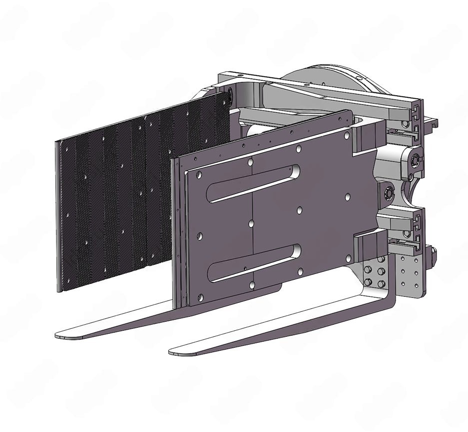 Поворотный универсальный захват с вилами — многофункциональная навеска «3-в-1», которая совмещает вилы, прижимные плиты и узел поворота. Позволяет работать как с паллетными грузами, так и с безпаллетными штабелями (короба, ящики, кипы), а при необходимости — повернуть или аккуратно опрокинуть тару для чистой выгрузки.