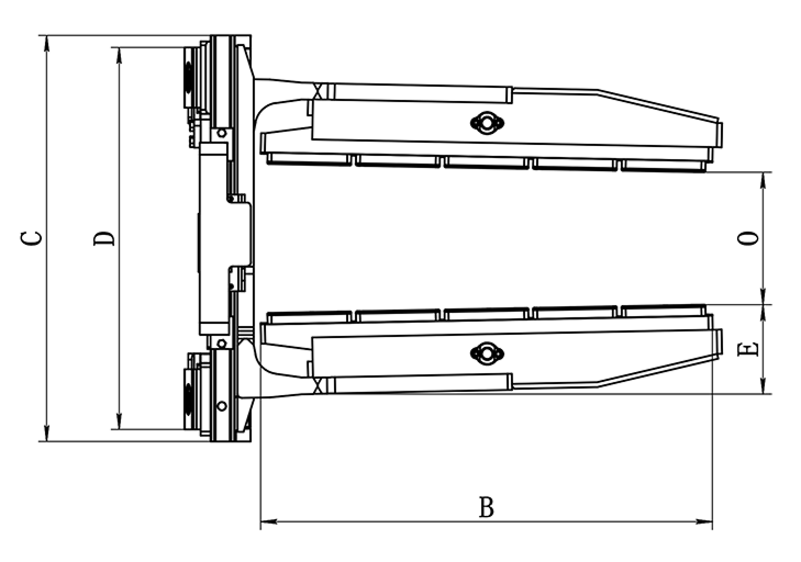 Артикул Г/п, кг Центр тяж., мм Класс каретки Диап. раскр. O, мм Выс. лап A, мм Длина лап B, мм Шир. рамы C, мм Межкрюк. расст. D, мм Толщ. лап E, мм Вес, кг Толщ. ET, мм Верт. центр тяж. VCG, мм Гор. центр тяж. HCG, мм