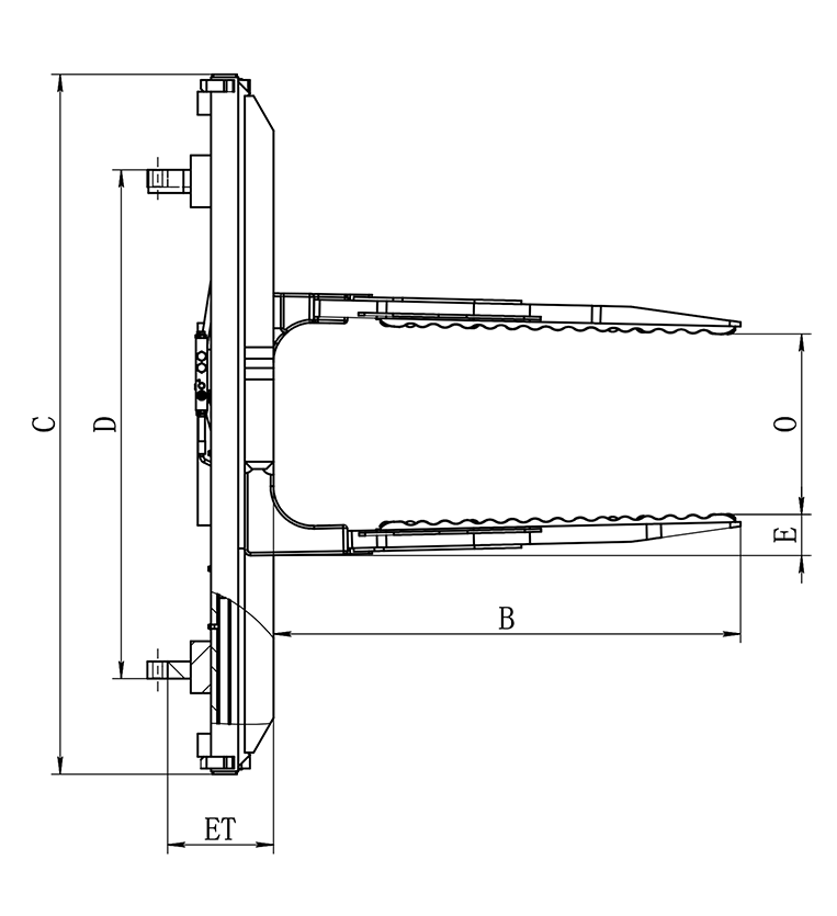 | Артикул | Г/п, кг | Центр тяж., мм | Класс каретки | Диап. раскр. O, мм | Выс. лап A, мм | Длина лап B, мм | Шир. рамы C, мм | Межкрюк. расст. D, мм | Толщ. лап E, мм | Расст. м/у верх. и ниж. отверст. для крюка F, мм | Монтаж. разм. G, мм | Диам. крюка ч/з вал H, мм | Вес, кг | Толщ. ET, мм | Верт. центр тяж. VCG, мм | Гор. центр тяж. HCG, мм | Г/п погруз., т |