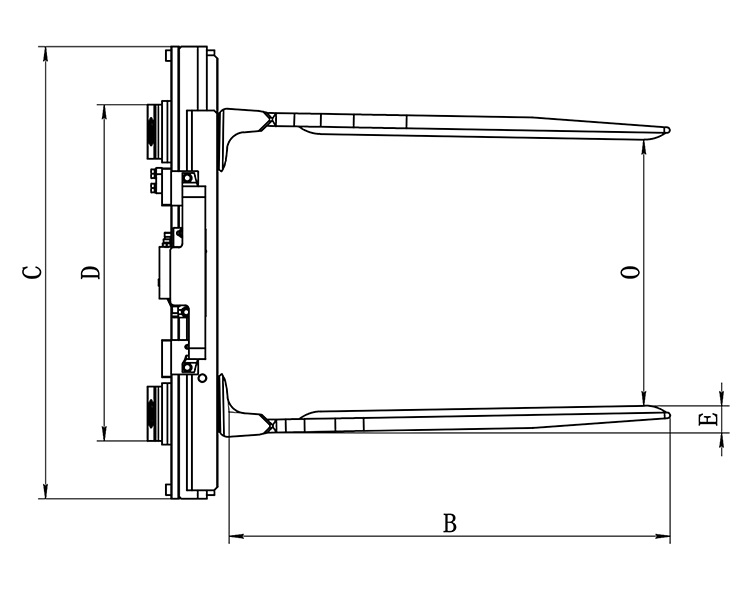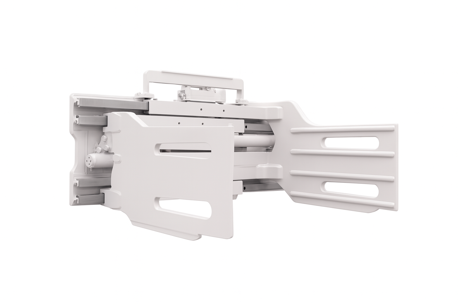Большой разбег раскрытия — до ~2,45 м в зависимости от версии, что позволяет работать как с компактными, так и с крупными кипами. Предусмотрены модификации под каретки FEM/ISO классов II, III и IV с типовыми грузоподъёмностями 2,0–3,0 т при центре нагрузки 500 мм.