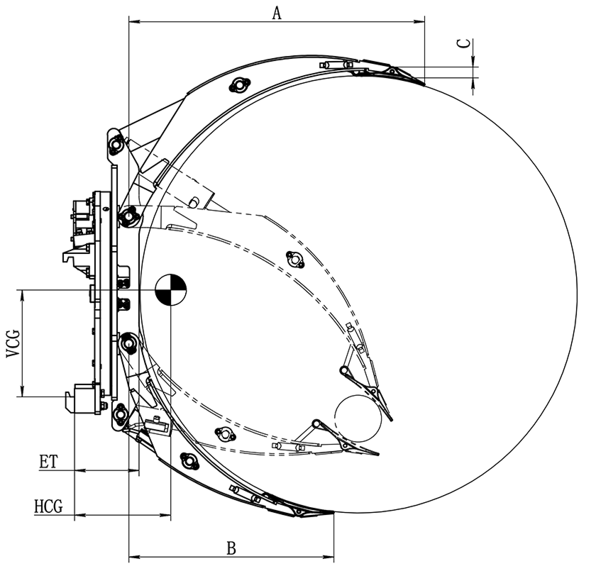 | Артикул | Г/п, кг | Центр тяж., мм | Диап. раскр., мм | Класс каретки | Длина больш. лапы A, мм | Длина меньш. лапы B, мм | Толщ. лап C, мм | Вес, кг | Толщ. ET, мм | Верт. центр тяж. VCG, мм | Гор. центр тяж. HCG, мм | Г/п погруз., т |