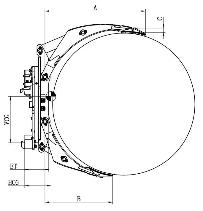 | Артикул | Г/п, кг | Центр тяж., мм | Класс каретки | Диап. рул., мм | Длина больш. лапы A, мм | Длина меньш. лапы B, мм | Толщ. лап C, мм | Вес, кг | Толщ. ET, мм | Верт. центр тяж. VCG, мм | Гор. центр тяж. HCG, мм | Разм. конт. площ. WxH, мм | Г/п погруз., т |