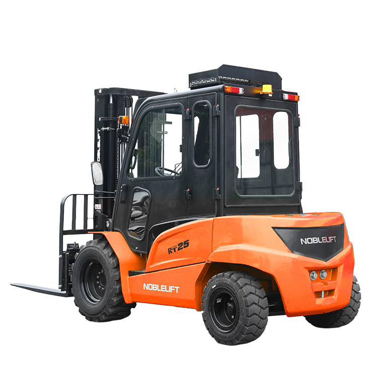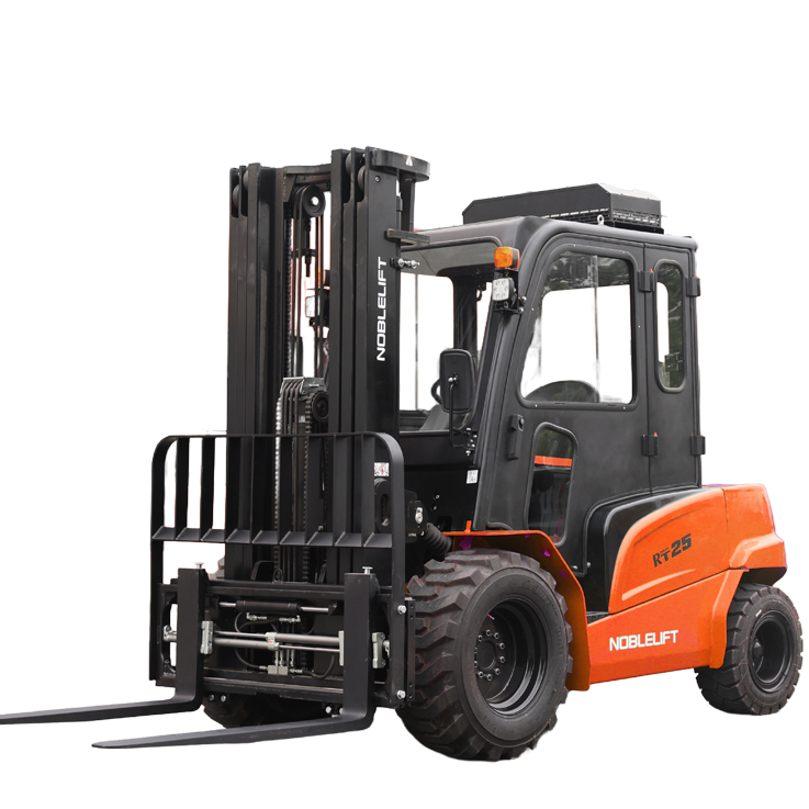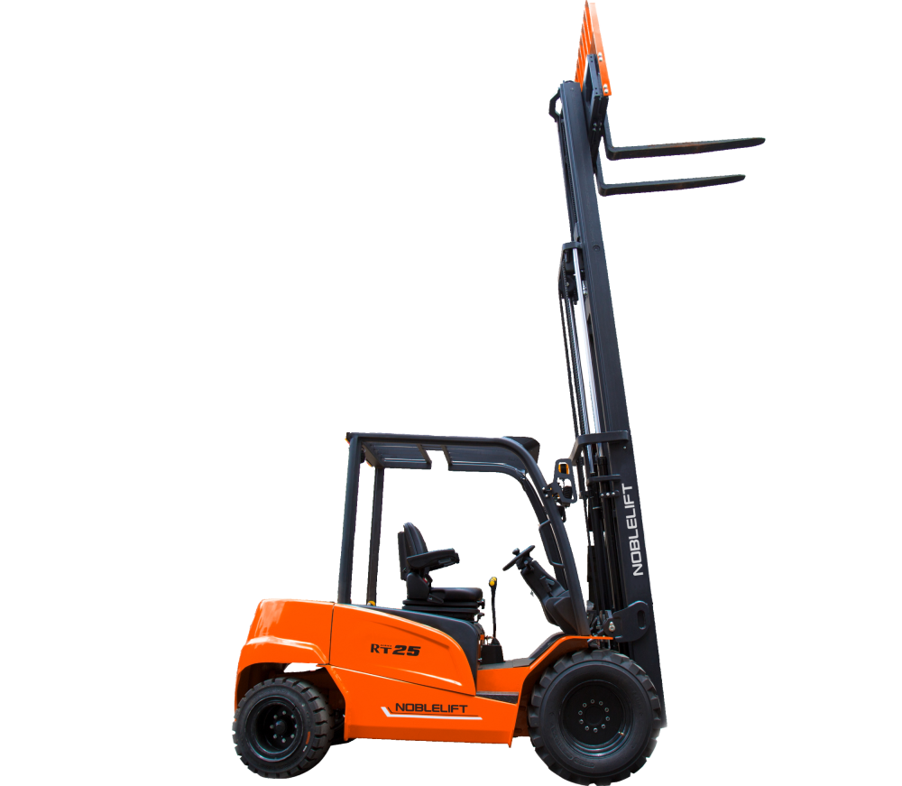 Модель FE2RT18-25 сочетает мощность дизельного погрузчика, экологичность электропривода и проходимость для бездорожья. Оснащена литий-ионным аккумулятором с зарядкой менее 2 часов, работает 4–6 часов без простоев. Развивает скорость до 20 км/ч, преодолевает уклоны до 30% с грузом. Компактная ширина 1450 мм идеальна для садов, складов с узкими проходами и контейнерных терминалов (высота в сложенном состоянии — 2135 мм). Защита IP54, мокрые дисковые тормоза и система безопасности при покидании места оператора.